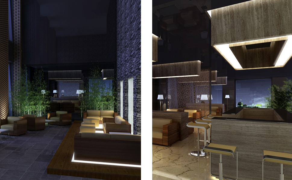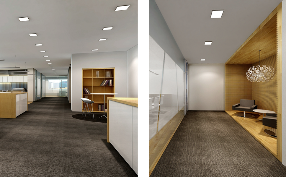 -A- People oriented design: The layout offers workstations near the window, so that employees can feel the sunshine, change of the light troughout the day and the surrounding city scenery. This, to support the natural biorythm and fitness. Break out areas for brief discussions and talks, to keep the motivation and information flow.-B- Sustainability / LEED: Use of renewable materials such as bamboo for the flooring, furnitures and Wall coverings, compressed straw board, low VOC adhesives sealants, paint and Carpets and ceilings that can be recycled. Implementation of building control-/sensor systems to reduce the energy consumption of artificial light and the A/C system.